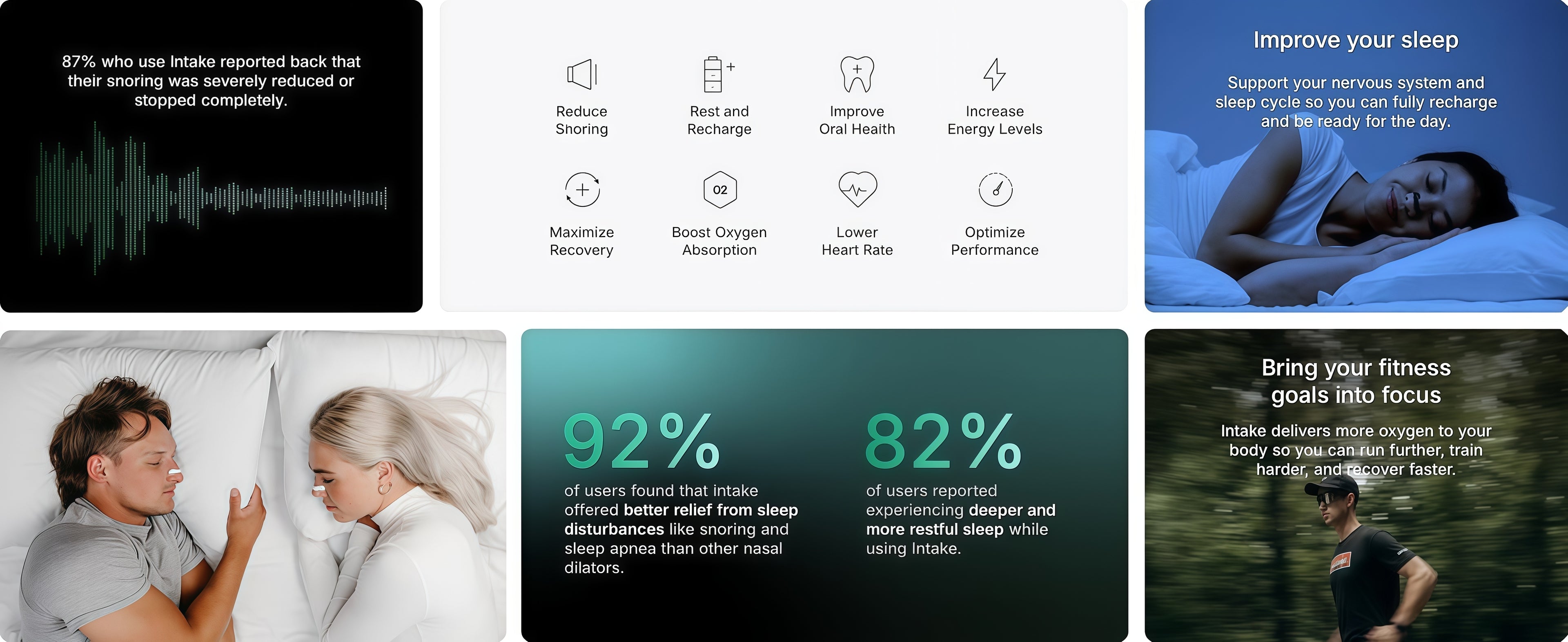 ntake can help to reduce snoring by widening the nasal passages and improving airflow. We've found that most users experience immediate results, while